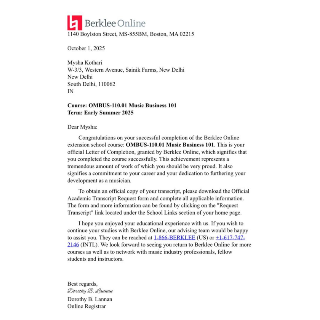 The most important lesson I carried from Music Business 101 at Berklee Online is that the music industry is no longer defined primarily by record labels. Instead, it is increasingly about artists learning how to empower themselves.