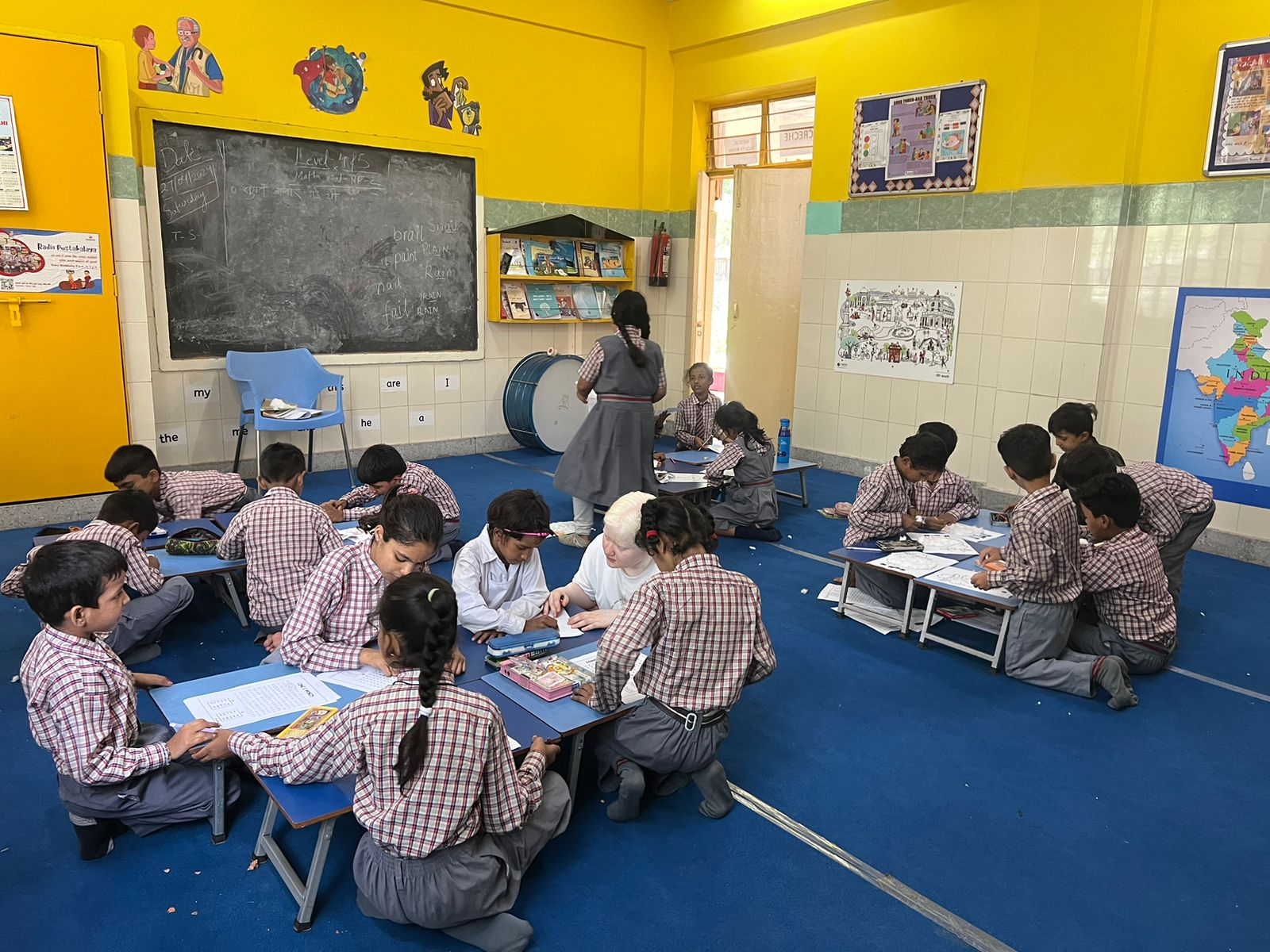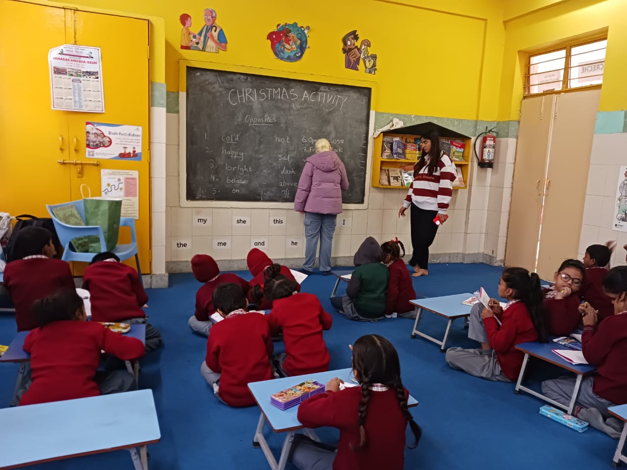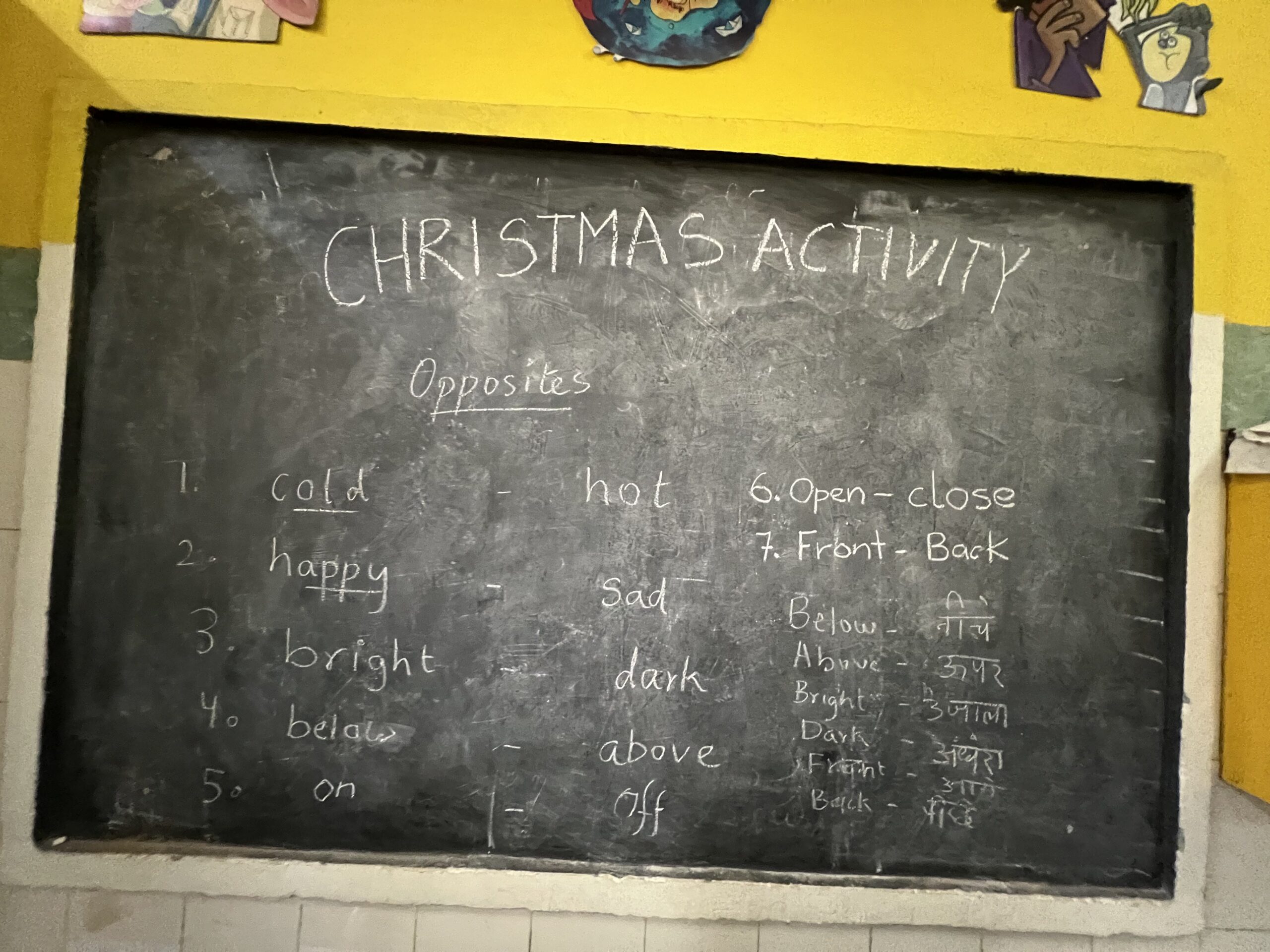 Today, being the students’ last day before the winter holiday, I organised a festive Christmas-themed session. To introduce the concept of opposites, I used engaging, holiday-related examples, such as, “Presents are kept below the tree, while the star is placed above.” Building on their cognitive skills, the students also created their own DIY Christmas trees. The hands-on activity sparked their creativity and enthusiasm, making it a joyful and memorable experience for everyone.
