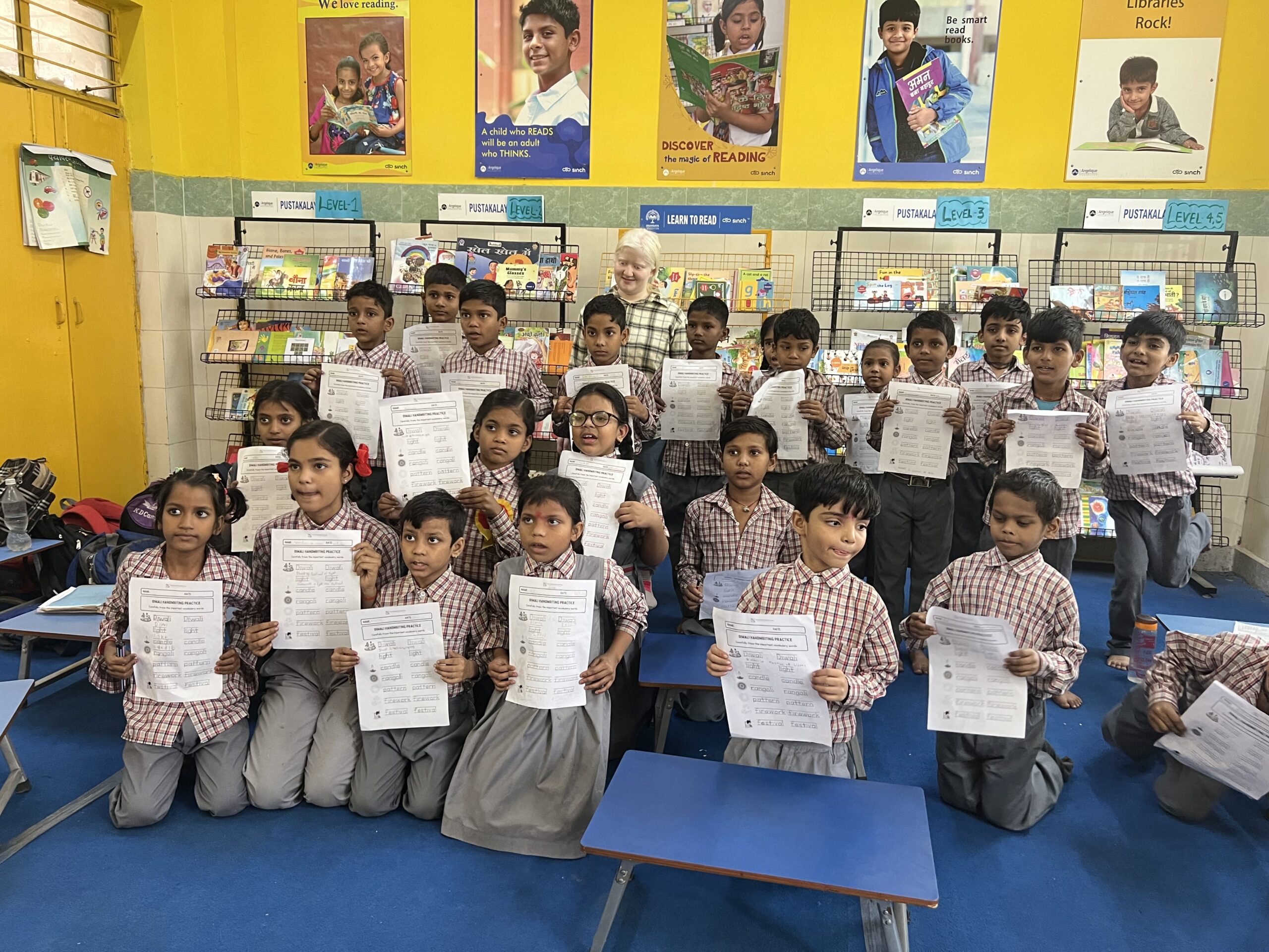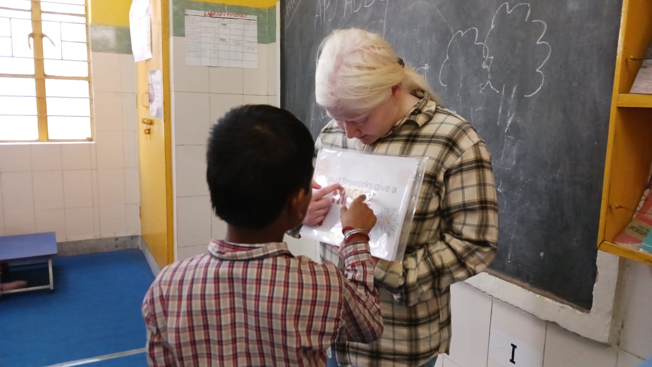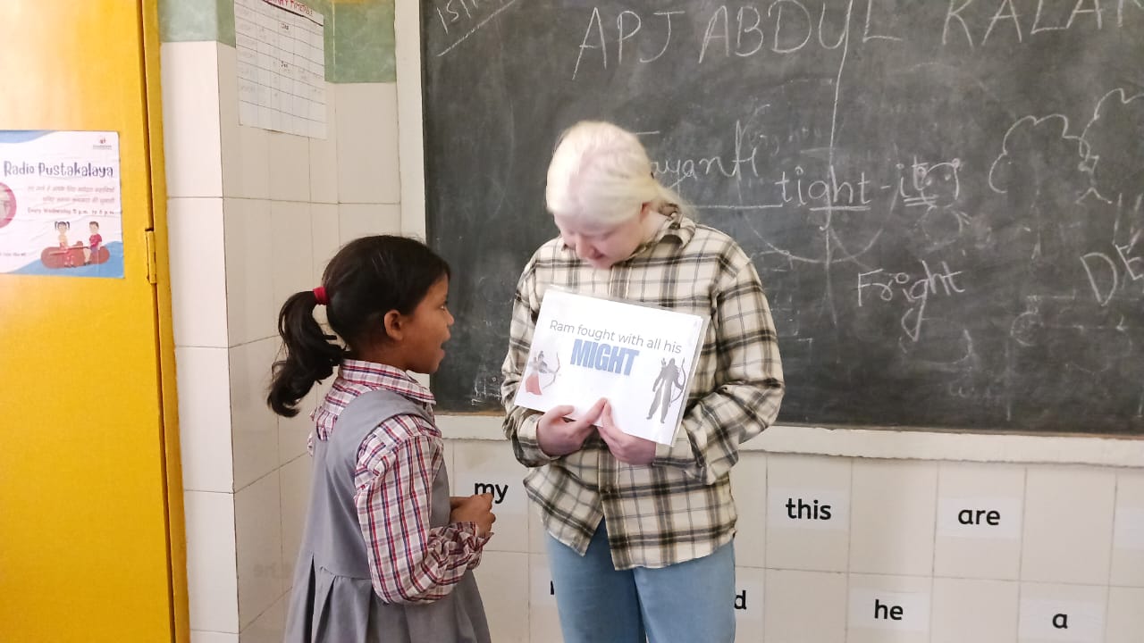 Today, on day 4 of my community service at the local government school, I read the story ‘The Lion and the Mouse’ to the students to teach them the moral that size doesn’t matter—anyone can help anyone, and it’s always important to be kind, as you never know who might help you in return. Afterward, I had them make small puppets of the mouse and the lion, and they acted out the story with music. Finally, the students completed worksheets to improve their English, spelling, and comprehension skills, spelling words like ‘lion,’ ‘mouse,’ and ‘jungle,’ and forming small sentences.